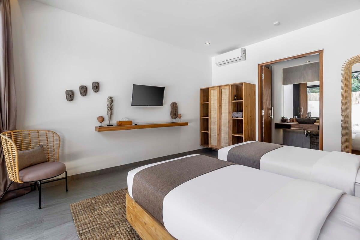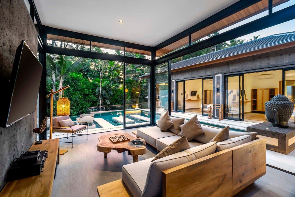 This newly built 3 bedroom villa is waiting for you in the jungle of Ubud, just a short drive from the busy centre! The beautifully unique set-up and breathtaking views will amaze you already on arrival and this feeling will last for your whole stay. A place to relax, rewind, be with friends and family and just enjoy your time here. The light filled villa hosts nature inspired ...